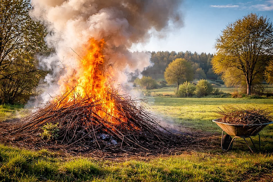 Um die Geruchsbelästigung gering zu halten, sollte das verwendete Material möglichst lufttrocken sein, d. h. keinen Grünschnitt, z. B. von Hecken, verwenden.
