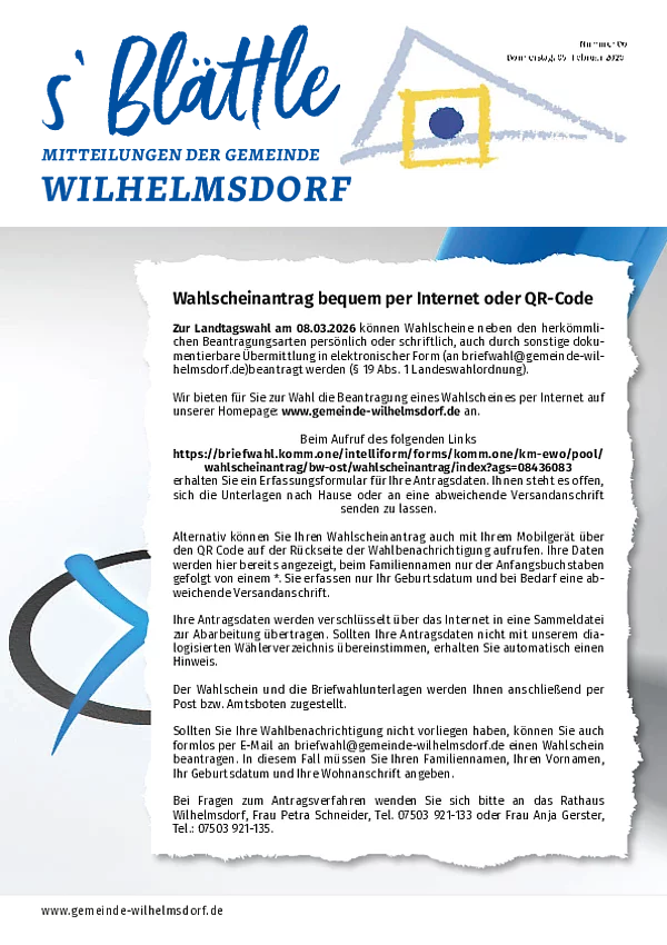 Wilhelmsdorfer Mitteilungsblatt Nr. 9/2026