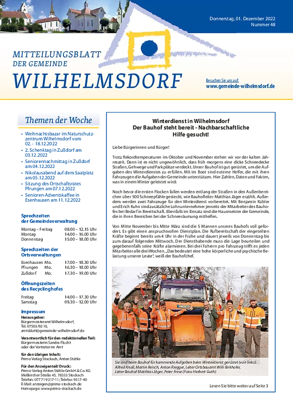 Wilhelmsdorfer Mitteilungsblatt Nr. 48/2022