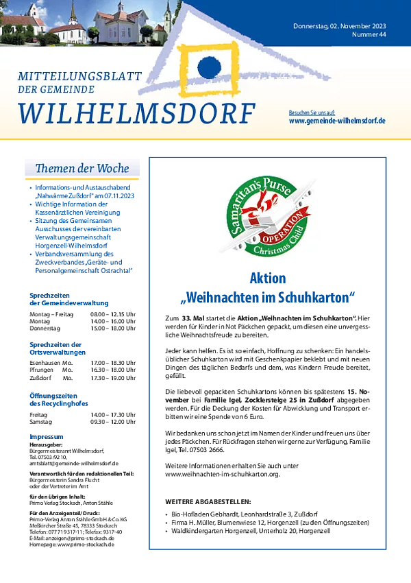 Wilhelmsdorfer Mitteilungsblatt Nr. 44/2023