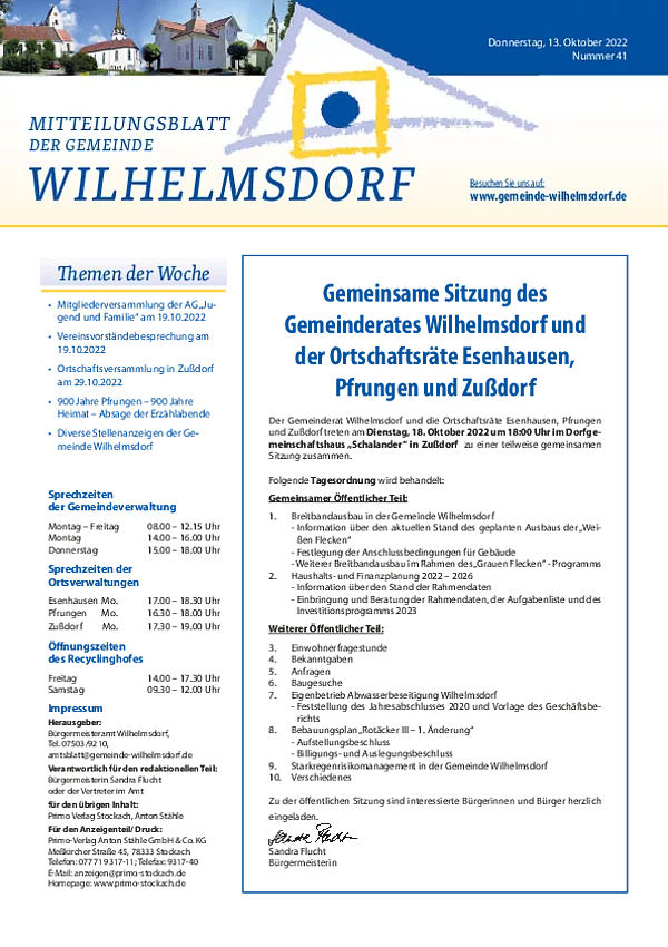 Wilhelmsdorfer Mitteilungsblatt Nr. 41/2022