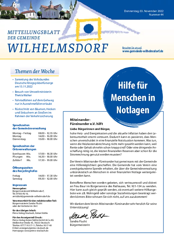 Wilhelmsdorfer Mitteilungsblatt Nr. 44/2022