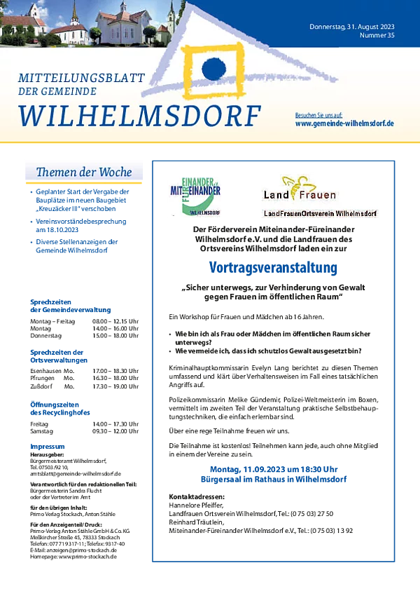 Wilhelmsdorfer Mitteilungsblatt Nr. 35/2023