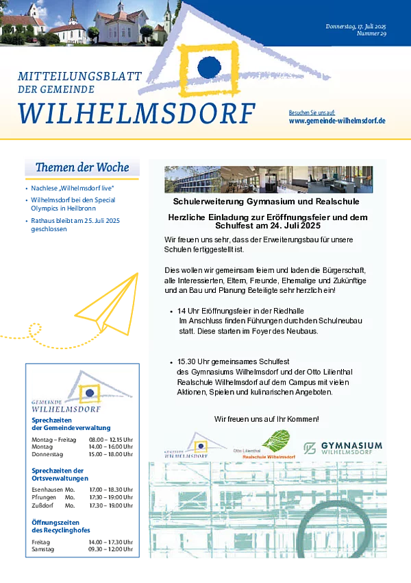 Wilhelmsdorfer Mitteilungsblatt Nr.29/2025