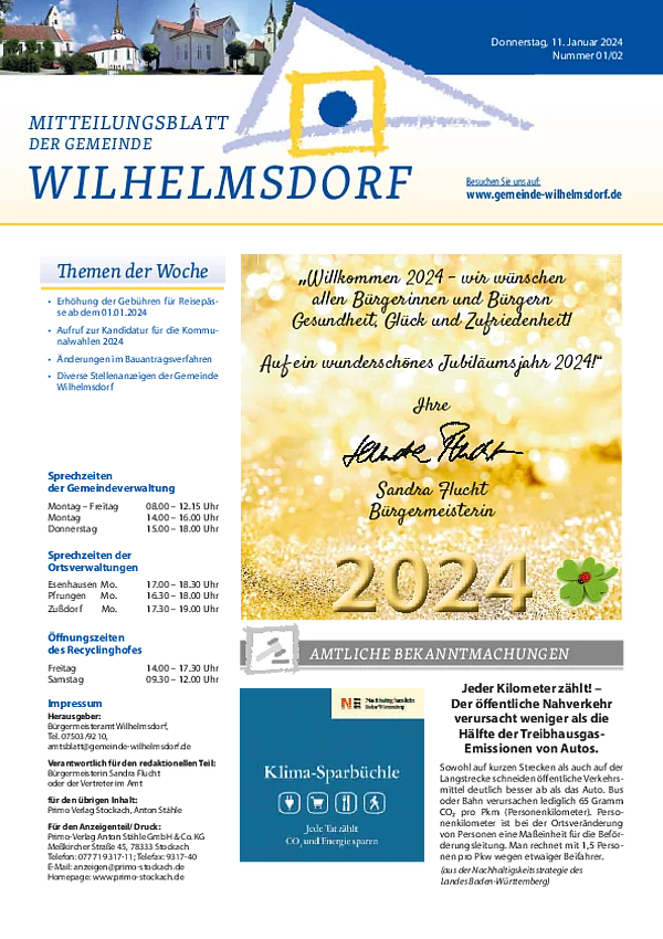 Wilhelmsdorfer Mitteilungsblatt KW 01 - 02/2024